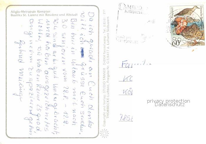 72859275 alte Postkarte Kempten Allgaeu Basilika St Lorenz mit Residenz und Altstadt Fliegeraufnahme postalisch gelaufen Erhaltung siehe scans [WerneD78] KatCode: 11110009763000
