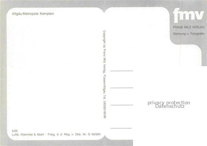 74043114 KEMPTEN Allgaeu Bayern Fliegeraufnahme postalisch nicht gelaufen Erhaltung siehe scans [WerneD78] KatCode: 11110009763000
