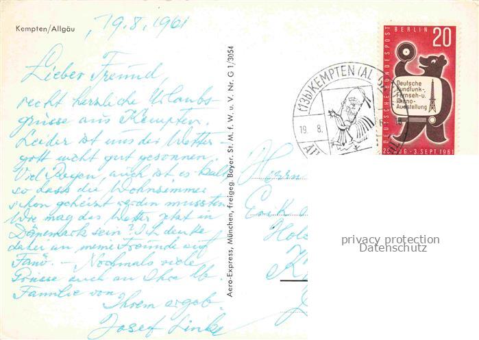74043879 alte Postkarte KEMPTEN Allgaeu Bayern Fliegeraufnahme postalisch gelaufen Erhaltung siehe scans [WerneD78] KatCode: 11110009763000