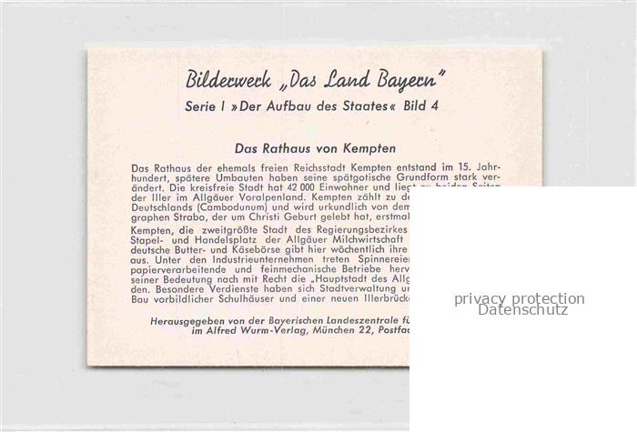 74112696 KEMPTEN Allgaeu Bayern Rathaus Sammelbild 7×10 cm postalisch nicht gelaufen Werbekarte (keine Postkarte) Erhaltung siehe scans [WerneD78] Werbekarte (keine Postkarte) Wern Katcode 11110009763000