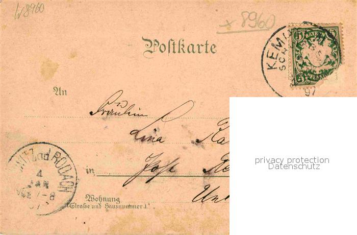 42690024 alte Postkarte Kempten Allgaeu Burghaide Kirche Partie am Fluss postalisch gelaufen Erhaltung siehe scans [LiesaD40] KatCode: 11110009763000