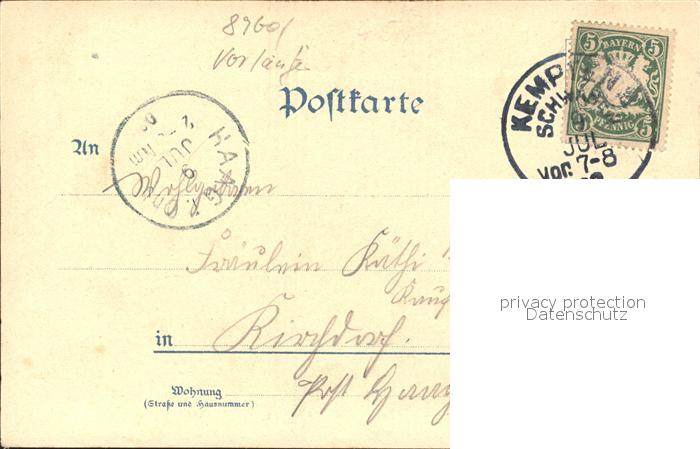 32028301 alte Postkarte Kempten Allgaeu Burghalde postalisch gelaufen Erhaltung siehe scans KatCode: 11110009763000