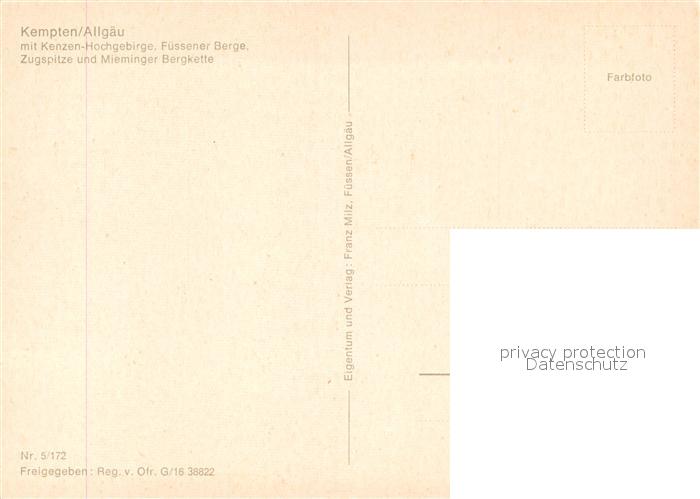 73542230 Kempten Allgaeu Fliegeraufnahme mit Kenzen Hochgebirge postalisch nicht gelaufen Erhaltung siehe scans [WerneD78] KatCode: 11110009763000