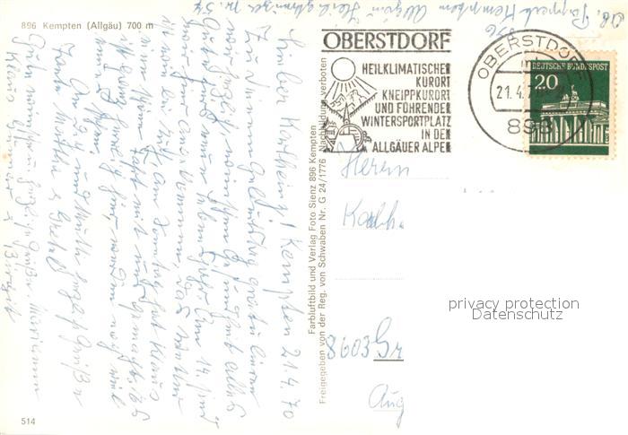 73714325 alte Postkarte Kempten Allgaeu Fliegeraufnahme postalisch gelaufen Erhaltung siehe scans [WerneD78] KatCode: 11110009763000