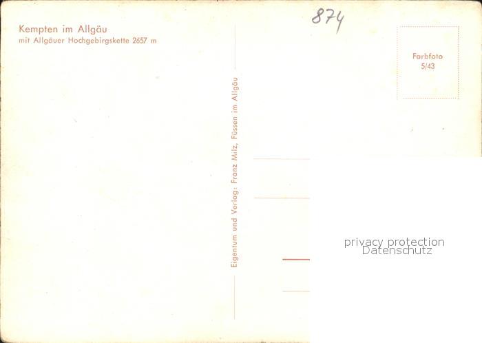 72606184 Kempten Allgaeu Gesamtansicht mit Hochgebirgskette postalisch nicht gelaufen Erhaltung siehe scans [AndreD76] KatCode: 11110009763000