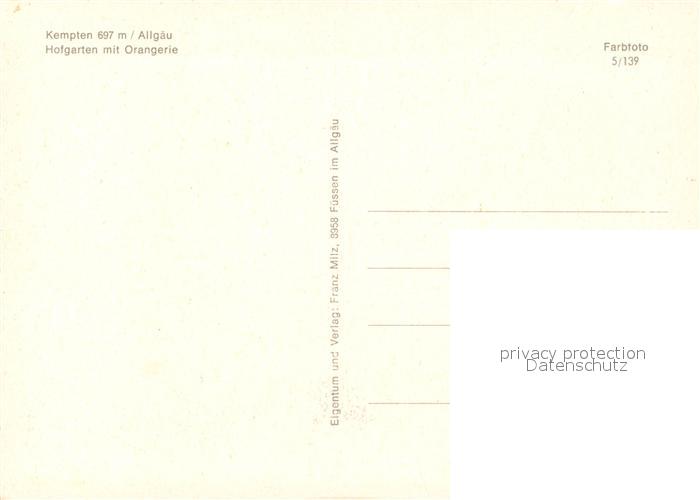 73172690 Kempten Allgaeu Hofgarten Orangerie postalisch nicht gelaufen Erhaltung siehe scans [KathaD81] KatCode: 11110009763000