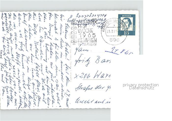 71933487 alte Postkarte Kempten Allgaeu Iller Freitreppe Rathausplatz St Lorenz Kirche postalisch gelaufen Erhaltung siehe scans KatCode: 11110009763000