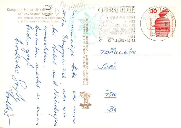 73937201 alte Postkarte Kempten Allgaeu Kamptner Huette Panorama postalisch gelaufen Erhaltung siehe scans [WerneD78] KatCode: 11110009763000