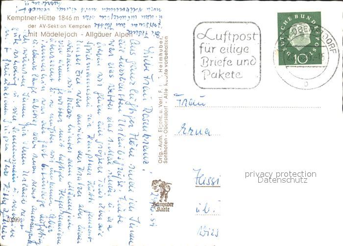 72606175 alte Postkarte Kempten Allgaeu Kempner Berghuette mit Maedeljoch postalisch gelaufen Erhaltung siehe scans [AndreD76] KatCode: 11110009763000