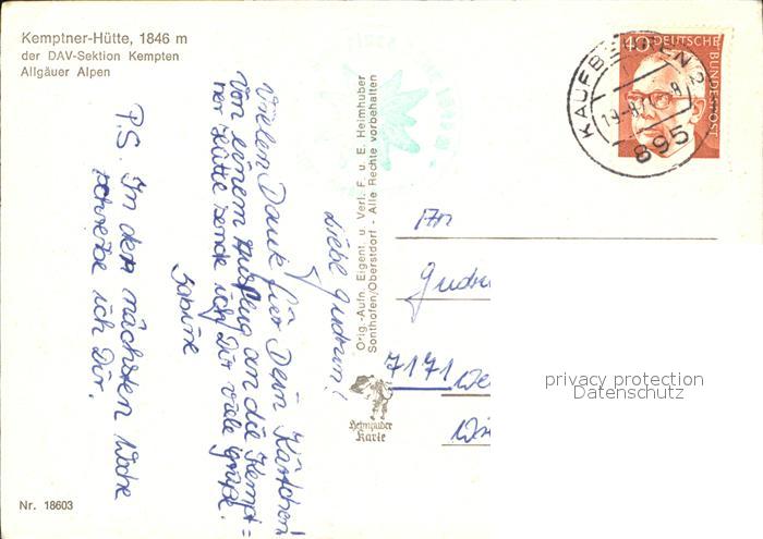 alte Postkarte Kempten Allgaeu Kemptener Huette postalisch gelaufen Erhaltung siehe scans