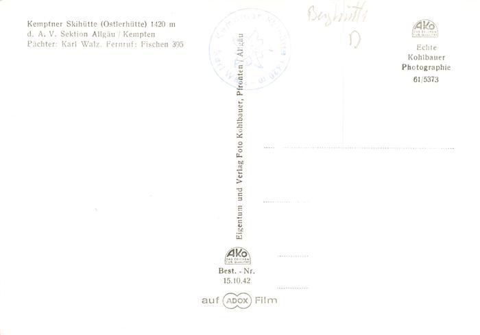 73937189 Kempten Allgaeu Kemptner Skihuette postalisch nicht gelaufen Erhaltung siehe scans [WerneD78] KatCode: 11110009763000