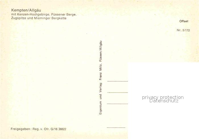 72842488 Kempten Allgaeu Kenzen-Hochgebirge Zugspitze Mieminger Bergkette postalisch nicht gelaufen Erhaltung siehe scans [PaolaD17] KatCode: 11110009763000