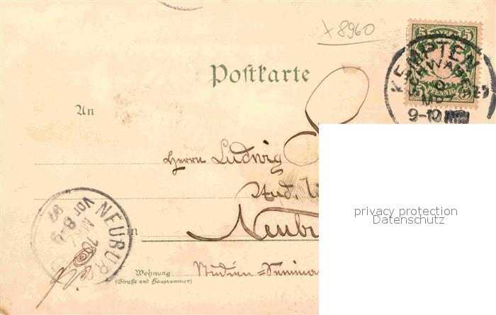 42690025 alte Postkarte Kempten Allgaeu Kirche Partie am Fluss postalisch gelaufen Erhaltung siehe scans [LiesaD40] KatCode: 11110009763000