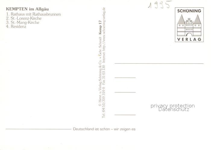 72932206 Kempten Allgaeu Kirchen Residenz Rathaus mit Brunnen postalisch nicht gelaufen Erhaltung siehe scans [LiesaD40] KatCode: 11110009763000