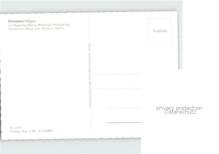 72203748 Kempten Allgaeu mit Zugspitze Mieminger Hochgebirge Tannheimer Berge Geishorn Fliegeraufnahme postalisch nicht gelaufen Erhaltung siehe scans KatCode: 11110009763000