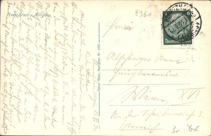 71481539 alte Postkarte Kempten Allgaeu Ortsansicht mit Kirche postalisch gelaufen Erhaltung siehe scans KatCode: 11110009763000