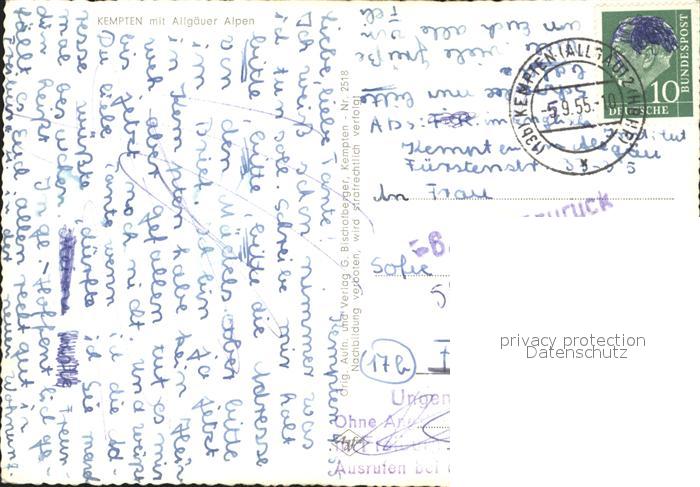 72090807 alte Postkarte Kempten Allgaeu Ortsansicht mit Kirche Allgaeuer Alpen postalisch gelaufen Erhaltung siehe scans KatCode: 11110009763000