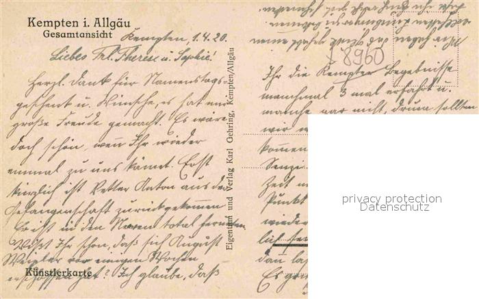 42660955 Kempten Allgaeu Panorama Kuenstlerkarte postalisch nicht gelaufen Erhaltung siehe scans [KathaD79] KatCode: 11110009763000