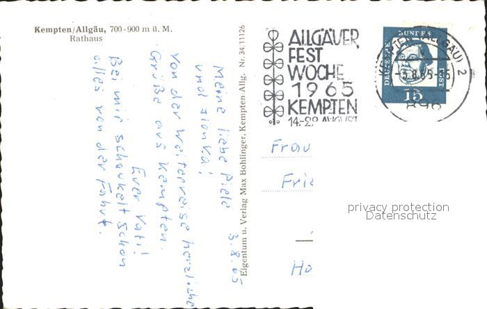 71989665 alte Postkarte Kempten Allgaeu Rathaus postalisch gelaufen Erhaltung siehe scans KatCode: 11110009763000