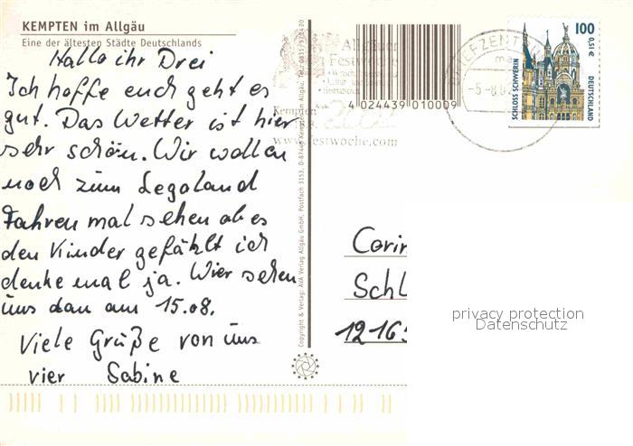 72917674 alte Postkarte Kempten Allgaeu Rathaus Hofgarten Basilika Freitreppe Iller Lichtfest postalisch gelaufen Erhaltung siehe scans [FriedD77] KatCode: 11110009763000