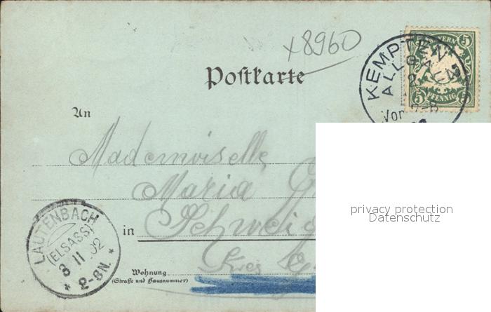 32028299 alte Postkarte Kempten Allgaeu Rathausplatz Krieger Denkmal Neustadt postalisch gelaufen Erhaltung siehe scans KatCode: 11110009763000