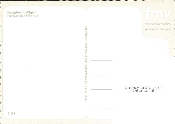 72198868 Kempten Allgaeu Rathausplatz mit Rathaus postalisch nicht gelaufen Erhaltung siehe scans KatCode: 11110009763000