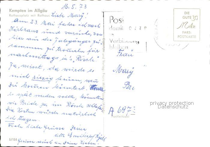 72289600 alte Postkarte Kempten Allgaeu Rathausplatz Rathaus postalisch gelaufen Erhaltung siehe scans KatCode: 11110009763000
