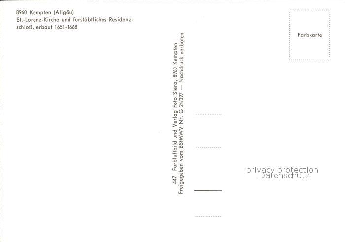 72482782 Kempten Allgaeu St Lorenz Kirche und fuerstaebtl Residenzschloss Fliegeraufnahme postalisch nicht gelaufen Erhaltung siehe scans KatCode: 11110009763000