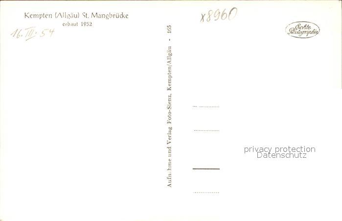 31850044 Kempten Allgaeu St. Mangbruecke Iller Kirche postalisch nicht gelaufen Erhaltung siehe scans KatCode: 11110009763000