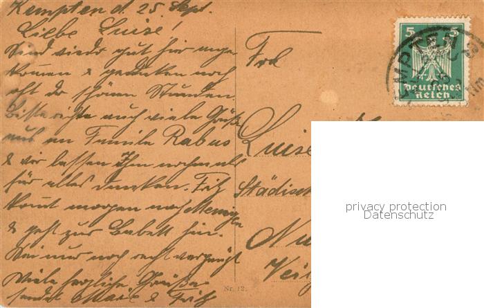 73800813 alte Postkarte Kempten Allgaeu St Meng Brunnen postalisch gelaufen Erhaltung siehe scans [WerneD78] KatCode: 11110009763000