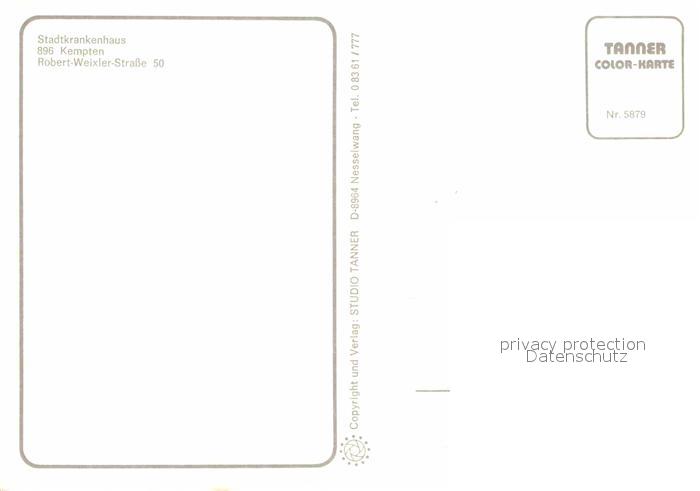 72786392 Kempten Allgaeu Stadtkrankenhaus postalisch nicht gelaufen Erhaltung siehe scans [AndreD76] KatCode: 11110009763000