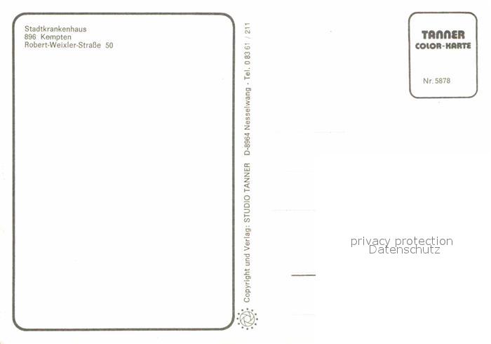 72790657 Kempten Allgaeu Stadtkrankenhaus postalisch nicht gelaufen Erhaltung siehe scans [LiesaD40] KatCode: 11110009763000