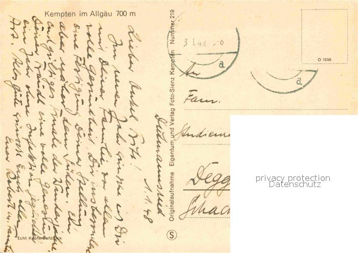 72796029 alte Postkarte Kempten Allgaeu Teilansicht postalisch gelaufen Erhaltung siehe scans [AndreD76] KatCode: 11110009763000