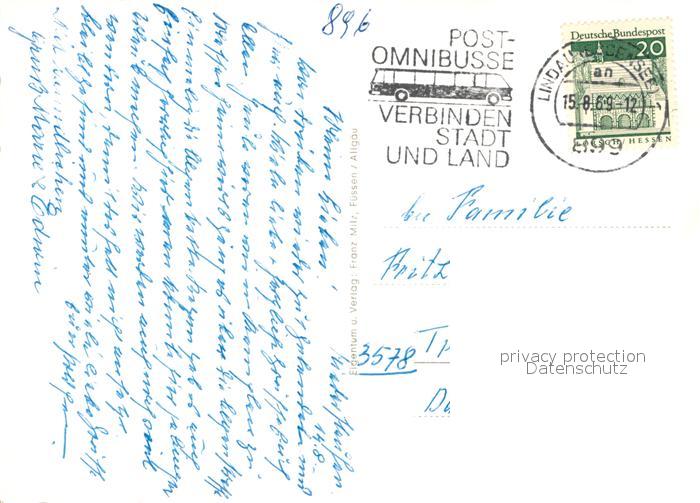 72938345 alte Postkarte Kempten Allgaeu und Umgebung Alpenpanorama Schloss Neuschwanstein Gruenten Denkmal postalisch gelaufen Erhaltung siehe scans [FriedD77] KatCode: 11110009763000