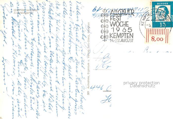 72982766 alte Postkarte Kempten Allgaeu Zumsteingarten postalisch gelaufen Erhaltung siehe scans [FriedD77] KatCode: 11110009763000