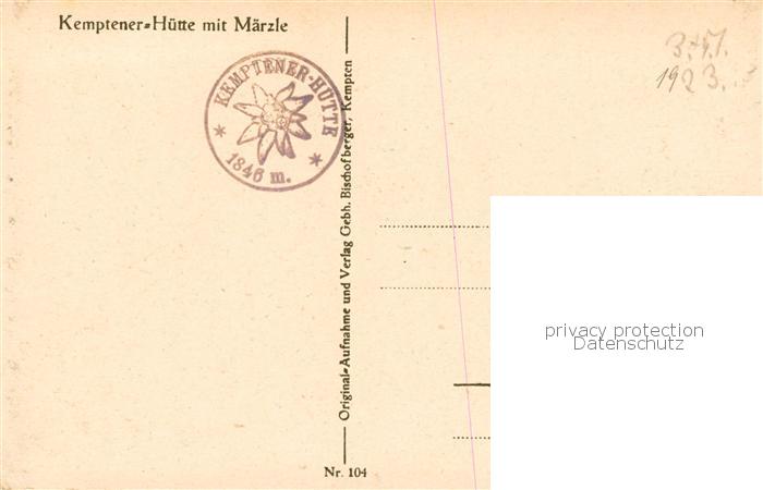 73808645 Kemptnerhuette 1845m Heilbronnerweg mit Maerzle postalisch nicht gelaufen Erhaltung siehe scans [WerneD78] KatCode: 11110009780133