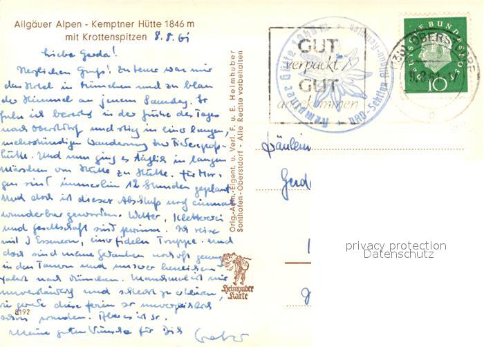 72951907 alte Postkarte Kemptnerhuette Krottenspitzen postalisch gelaufen Erhaltung siehe scans [PaolaD17] KatCode: 11110009780133