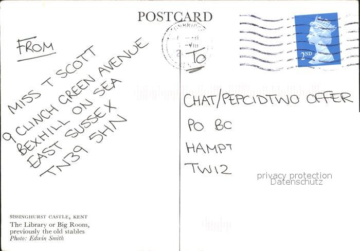 old postcard Kent Sissinghurst Castle postalisch gelaufen Erhaltung siehe scans