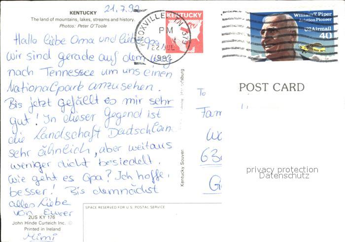 72444710 old postcard Kentucky US-State Land of mountains lakes streams and history Wasserfall See Berge postalisch gelaufen Erhaltung siehe scans KatCode: 14140190000000