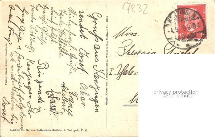 31735057 alte Postkarte Kenzingen Fliegeraufnahme postalisch gelaufen Erhaltung siehe scans KatCode: 11110008316020