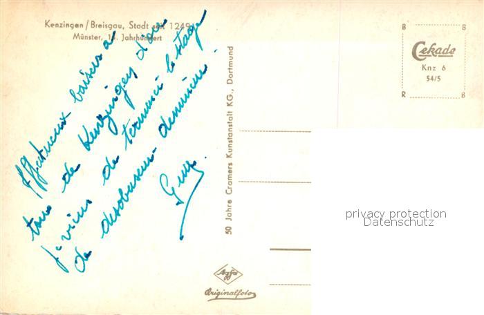43489291 Kenzingen M?nster postalisch nicht gelaufen Erhaltung siehe scans [LiesaD40] KatCode: 11110008316020