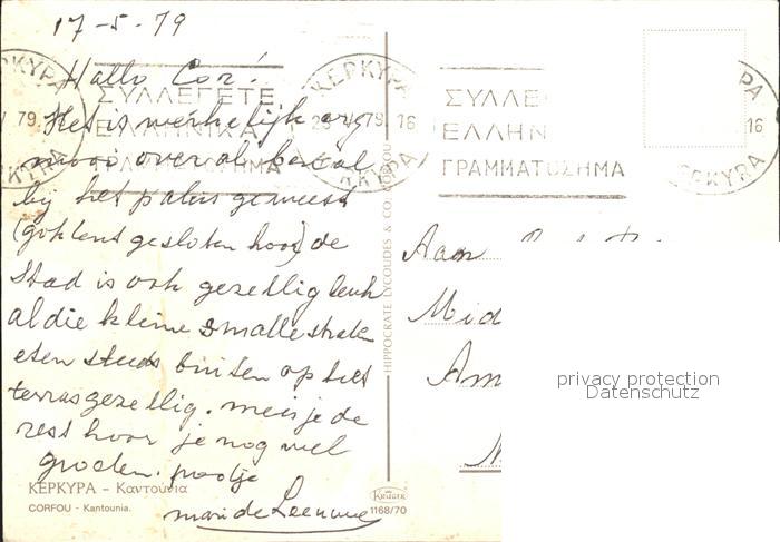 old postcard Kepkypa Corfu Kantounia postalisch gelaufen Erhaltung siehe scans