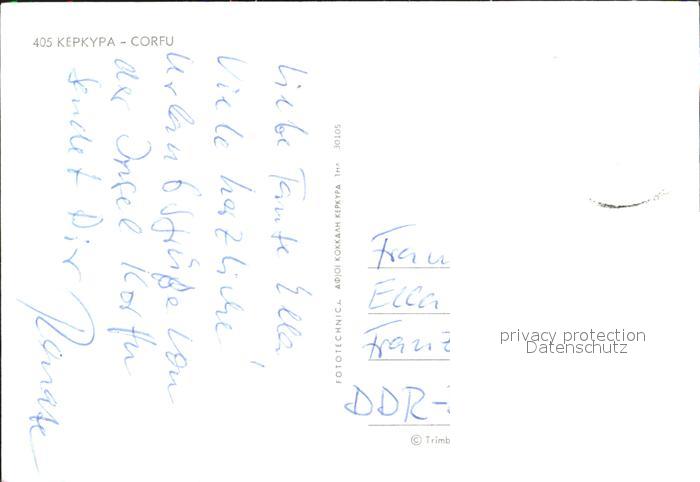 old postcard Kepkypa Corfu Segelboote Landkarte Teilansichten postalisch gelaufen Erhaltung siehe scans