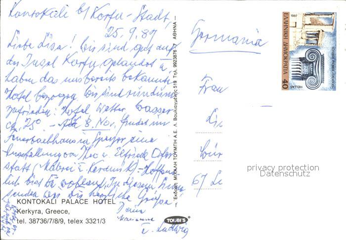 old postcard Kerkyra Fliegeraufnahme Kontokali Palace Hotel postalisch gelaufen Erhaltung siehe scans