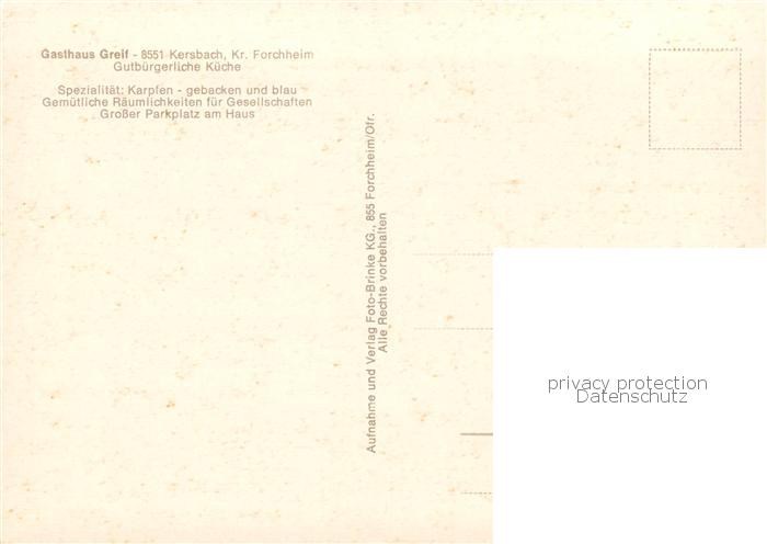 73863036 Kersbach Oberfranken Gasthaus Greif Festtafel Kirche postalisch nicht gelaufen Erhaltung siehe scans [FriedD77] KatCode: 11110009474126