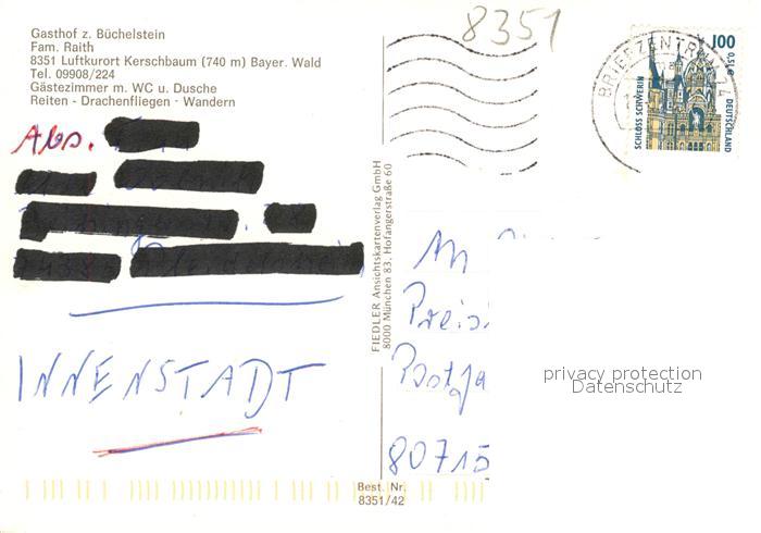 73047386 alte Postkarte Kerschbaum Gasthof zum Buechelstein postalisch gelaufen Erhaltung siehe scans [WerneD78] KatCode: 11110009271123
