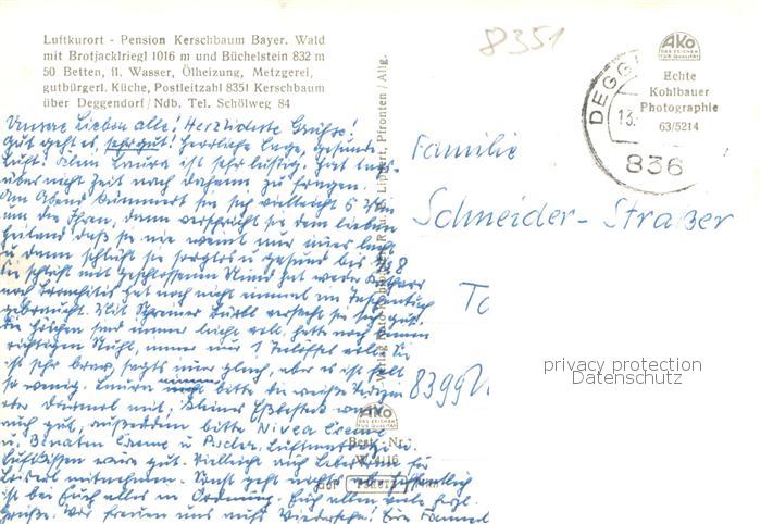 73763339 alte Postkarte Kerschbaum Panorama Pension Kerschbaum Sender Brotjalriegl Buechlstein postalisch gelaufen Erhaltung siehe scans [WerneD78] KatCode: 11110009271123