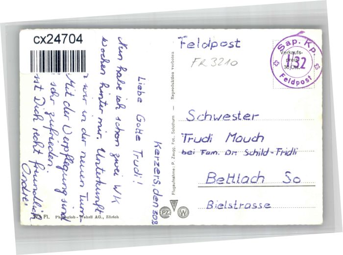 10752936 alte Postkarte Kerzers Fliegeraufnahme postalisch gelaufen KatCode: 11470070280416