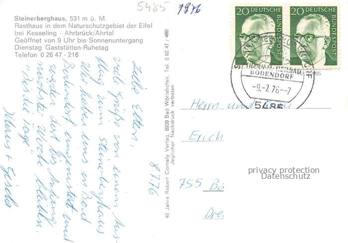 74053239 alte Postkarte Kesseling Steinberghaus Rasthaus Naturschutzgebiet der Eifel Landschaftspanorama postalisch gelaufen Erhaltung siehe scans [FriedD77] KatCode: 11110007131039