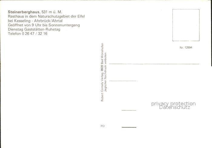 72426046 Kesseling Steinberghaus Rasthaus Naturschutzgebiet Eifel postalisch nicht gelaufen Erhaltung siehe scans KatCode: 11110007131039